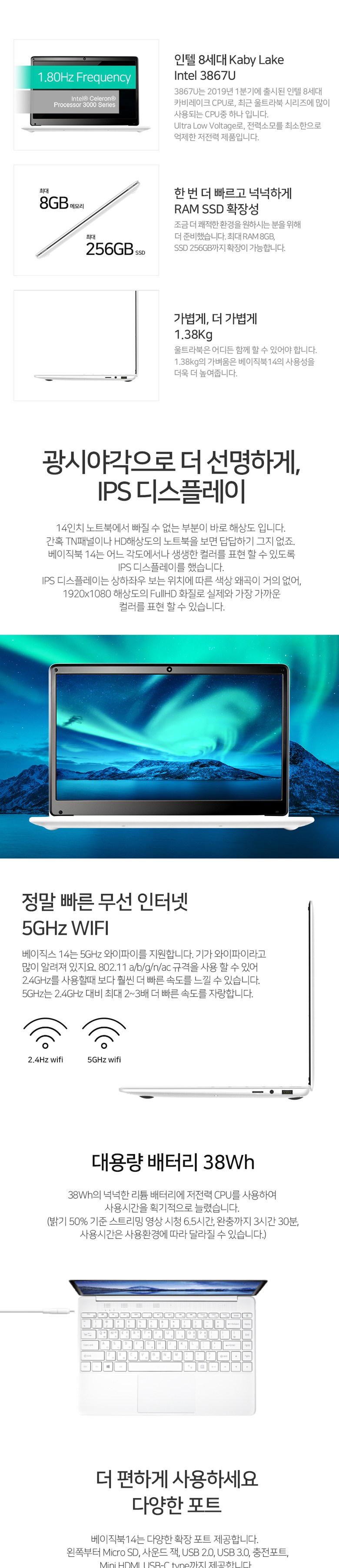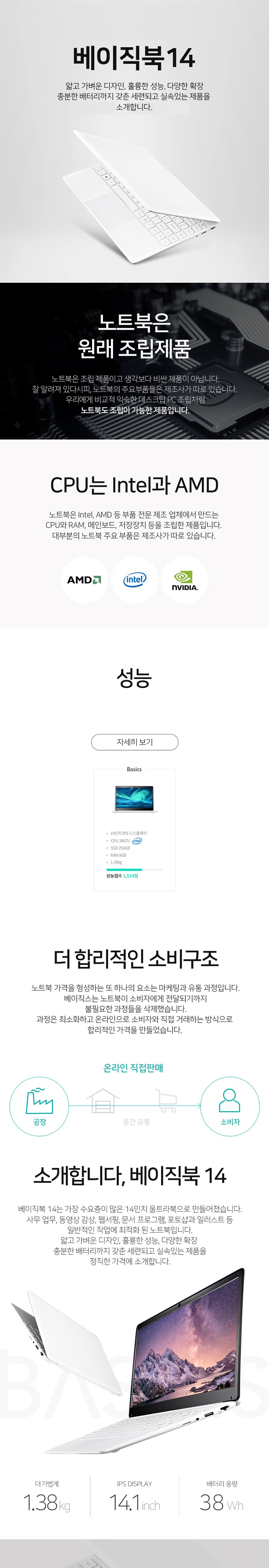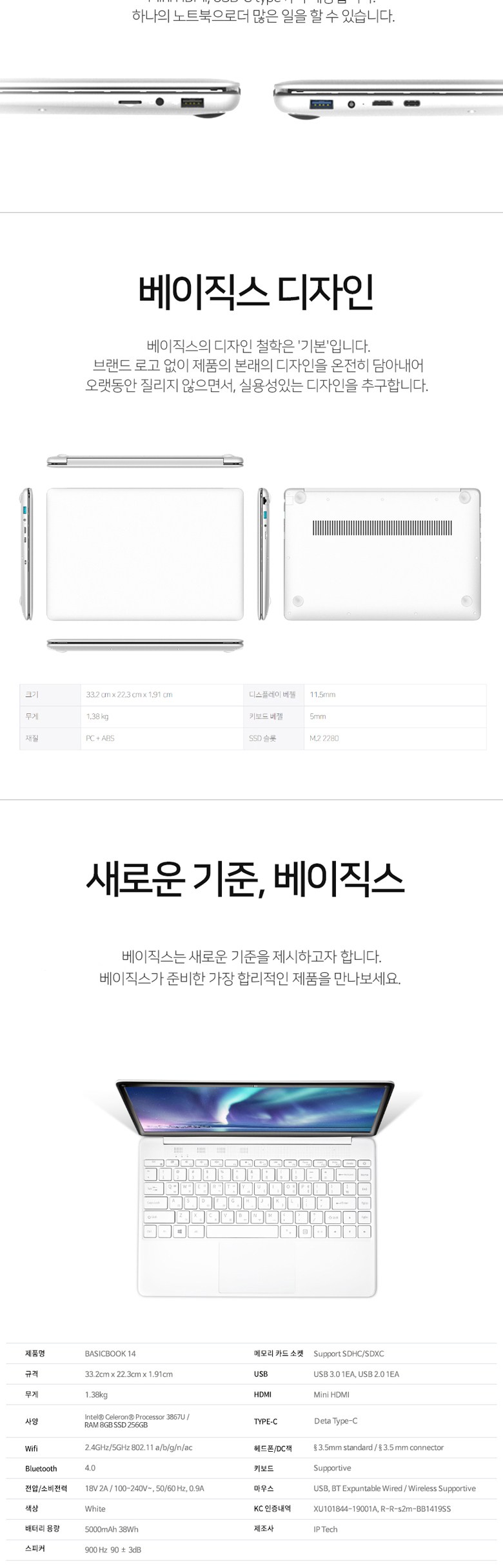 베이직스 14 노트북 BB1419SS (Celeron 3867U 33.2cm WIN미포함), 미포함, SSD 256GB, 8GB